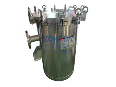 袋式过滤机是一种压力式过滤装置,主要有过滤筒体、过滤筒盖和快开机构、不锈钢滤袋加强网等主要部件组成,滤液由过滤机外壳的旁侧入口管流入滤袋,滤袋本身是装置在加强网篮内,液体渗透过所需要细度等级的滤袋即能获得合格的滤液,杂质颗粒被滤袋拦截。该机更换滤袋十分方便,过滤基本无物料消耗。